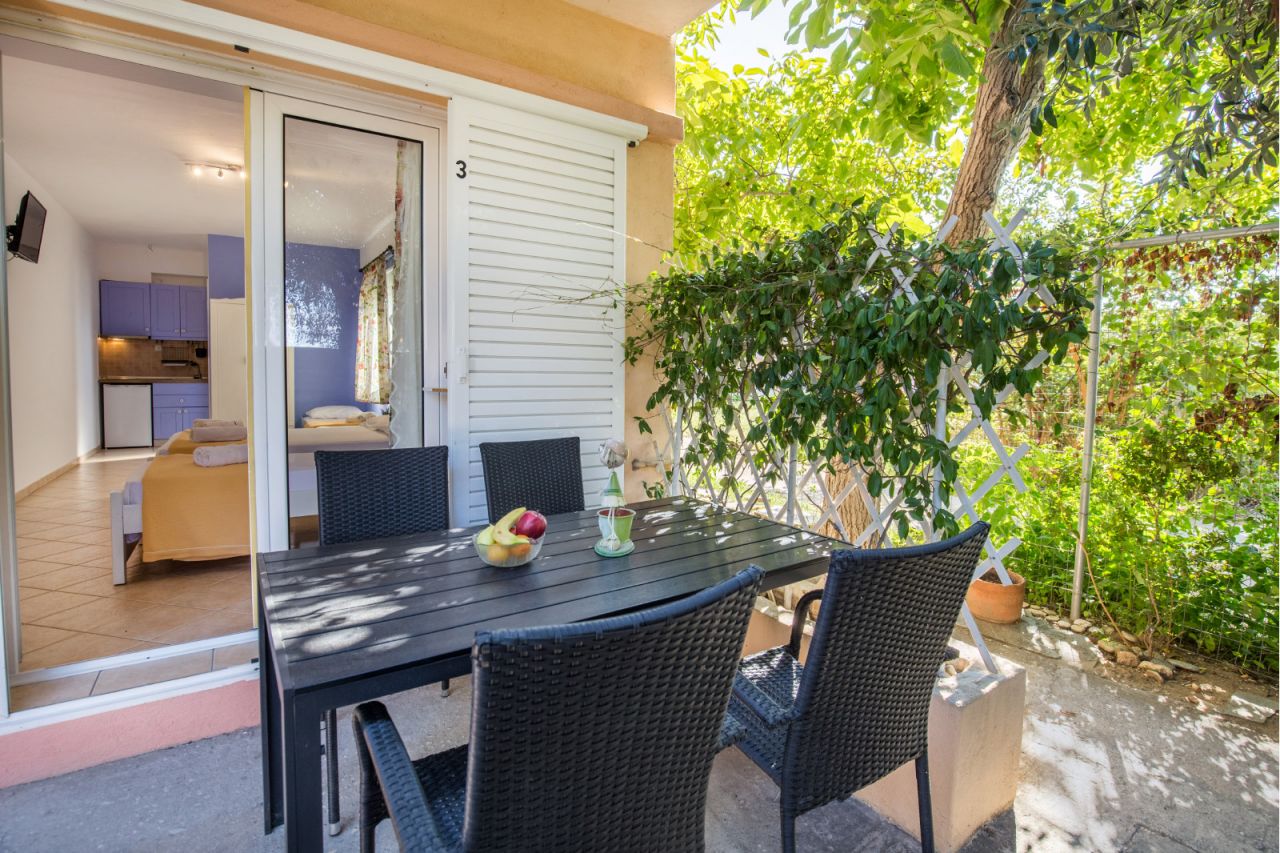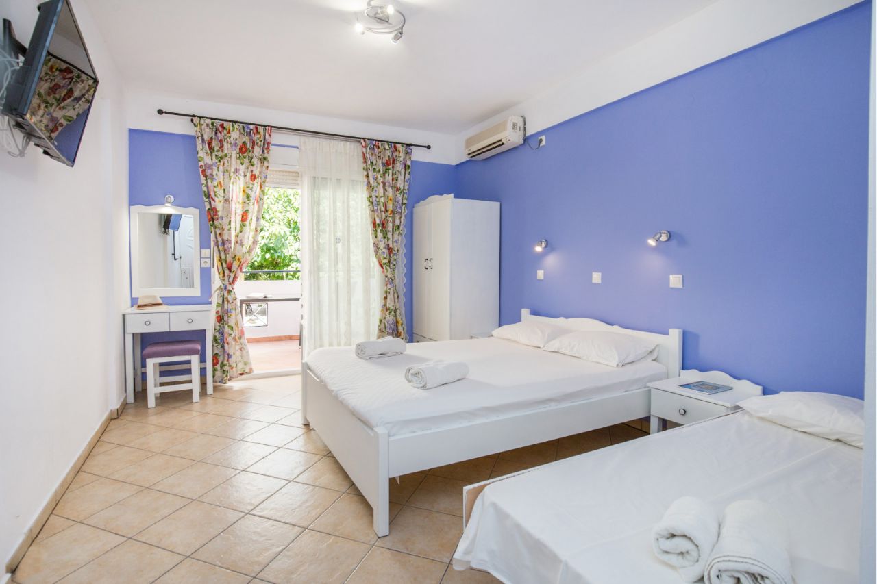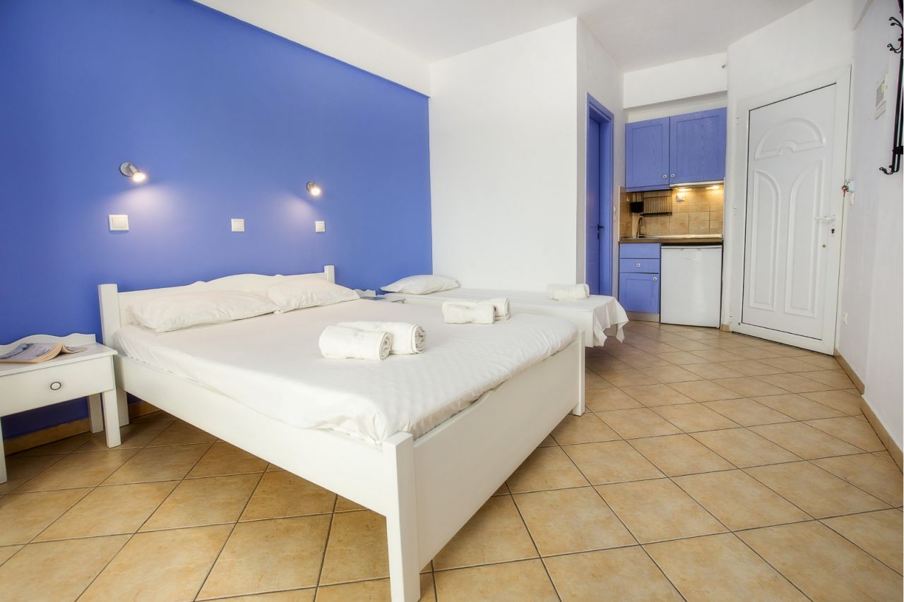 Διαθέτουμε 8 μεγάλα και πλήρως εξοπλισμένα studios (μπάνιο, κουζίνα, ψυγείο, κλιματισμό, TV, ασύρματο internet) κάποια με θέα την θάλασσα, και ένα δίχωρο διαμέρισμα με αυλή. Για όλα τα διαμερίσματα υπάρχει χώρος πάρκινγκ.